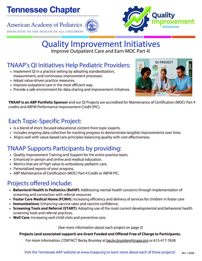 To learn more about TNAAP's Quality Improvement Initiative, please contact